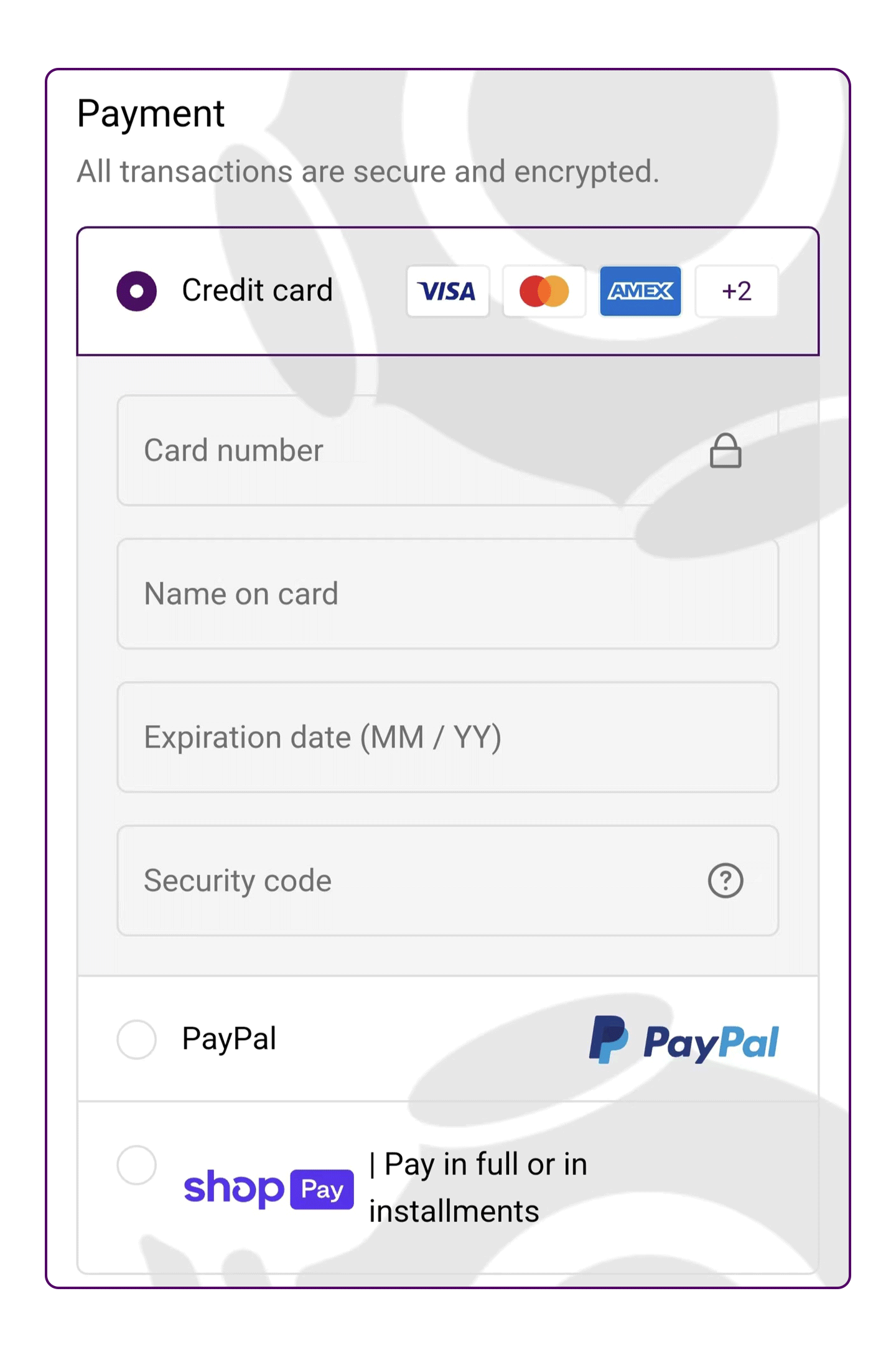 - Fill in information, then click 'Continue to shipping' and 'Continue to payment'